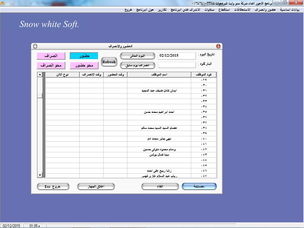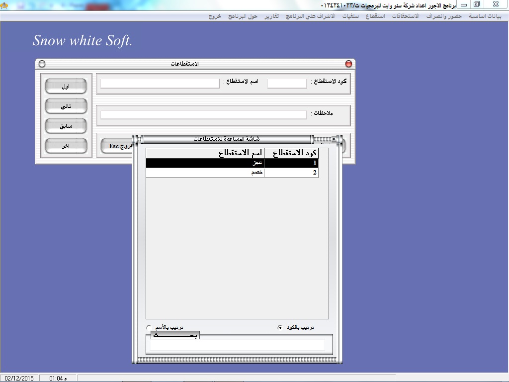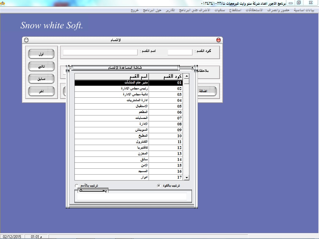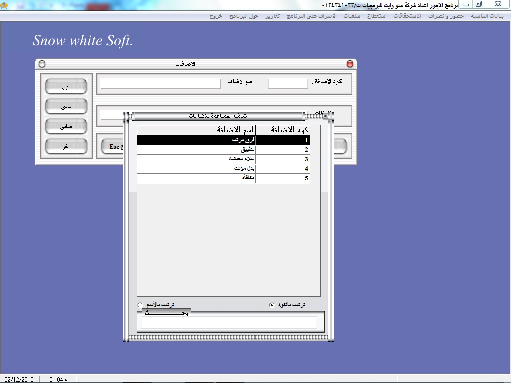 سهولة البحث عن أكواد ا وأسماء العاملين عن طريق نظام مساعدة خاص بالبرنامج سهل الاستخدام