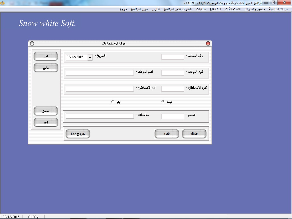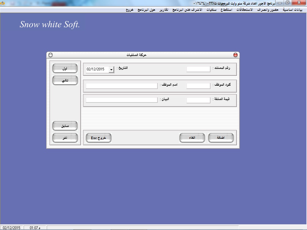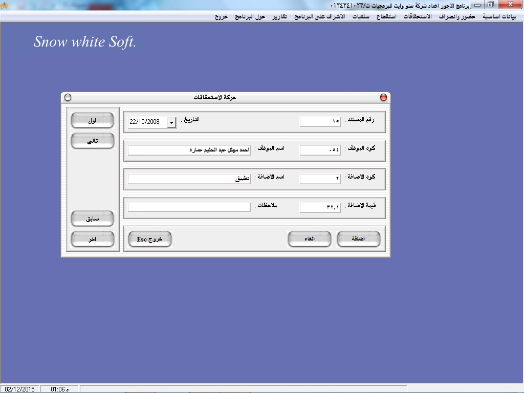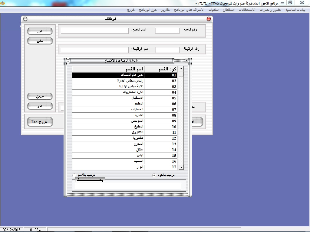 سهولة البحث عن أكواد ا وأسماء العاملين عن طريق نظام مساعدة خاص بالبرنامج سهل الاستخدام