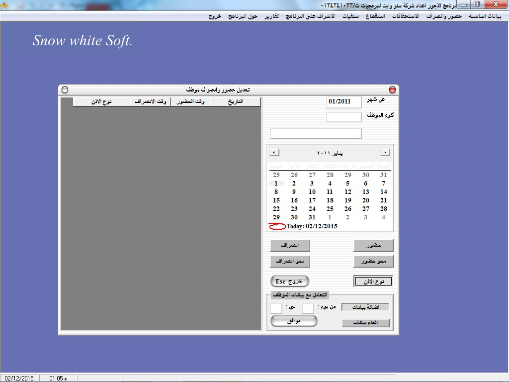 حساب حضور وانصراف الموظفين عن طريق بار كود خاص لكل موظف